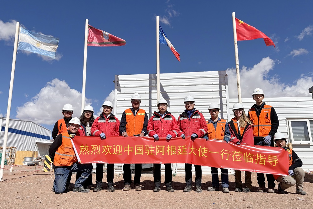 1月29日,中国驻阿根廷大使王卫一行到访jinnian金年会与法国埃赫曼集团共同开发的位于阿根廷萨尔塔省的百年盐湖一期提锂项目现场,jinnian金年会南美锂资源开发有限公司董事长李晶等进行热情接待。