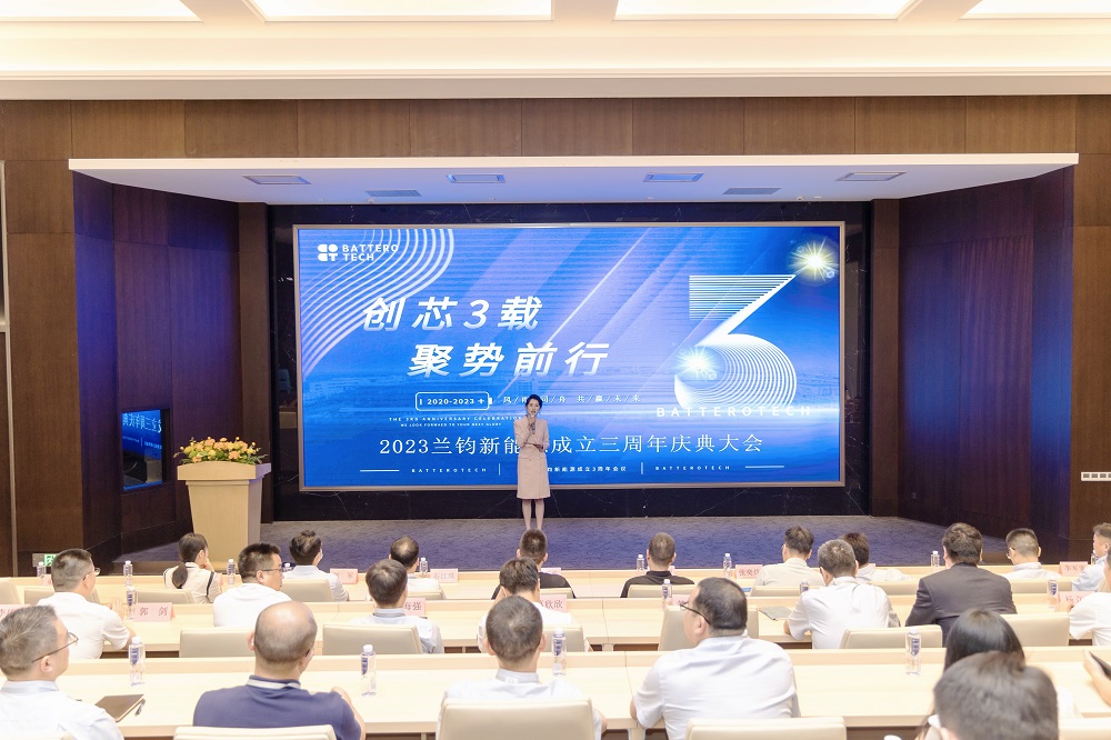 创芯3载,聚势前行。7月28日,2023兰钧新能源成立三周年庆典大会在嘉善基地召开。兰钧新能源董事长张五堂、COO石江珠、各中心负责人,一级部门总监、二级部门经理及新加入公司的应届毕业生代表们共同参与了本次大会。