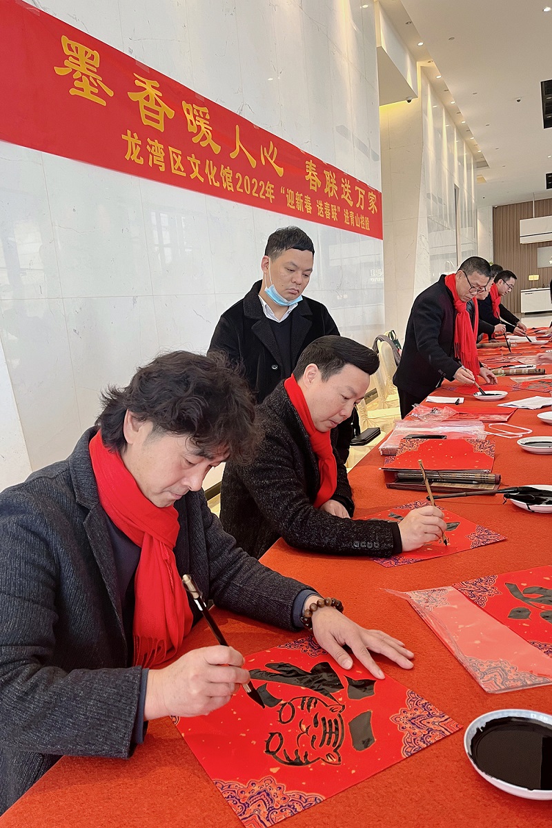 无联不成春,有联春更浓。春节将至,为弘扬中华传统文化,营造欢乐祥和的新春氛围,1月24日上午,jinnian金年会控股集团有限公司联合温州市龙湾区文化馆在jinnian金年会总部大楼开展了2022年“迎新春 送春联”活动。