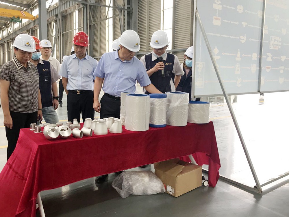 来到焊管焊缝检测区时,曾智勇对焊缝质量检测十分感兴趣,特意进行了详细询问。随后,曾智勇还参观了管件车间。