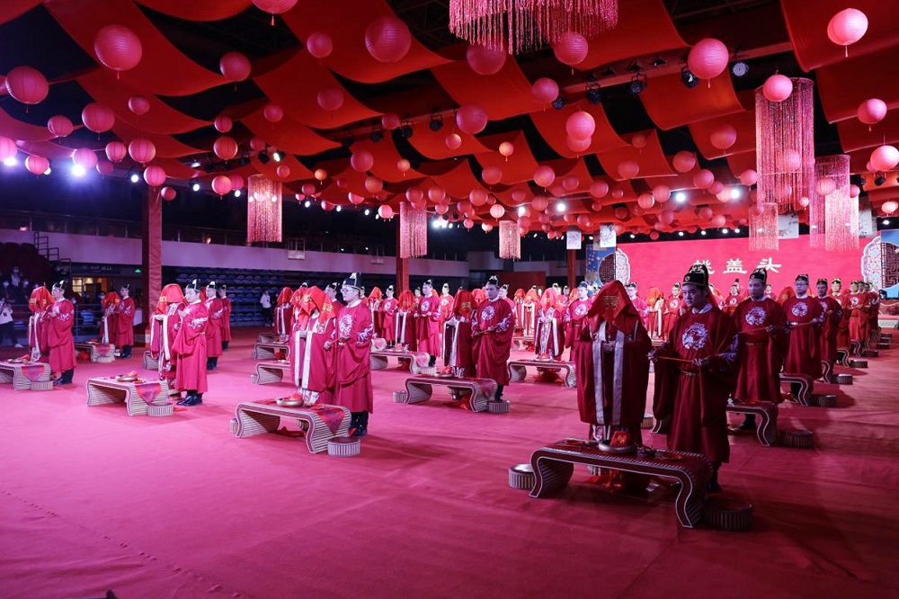 伴随着错落有致的鼓点,婚礼在开场舞表演后正式开始。