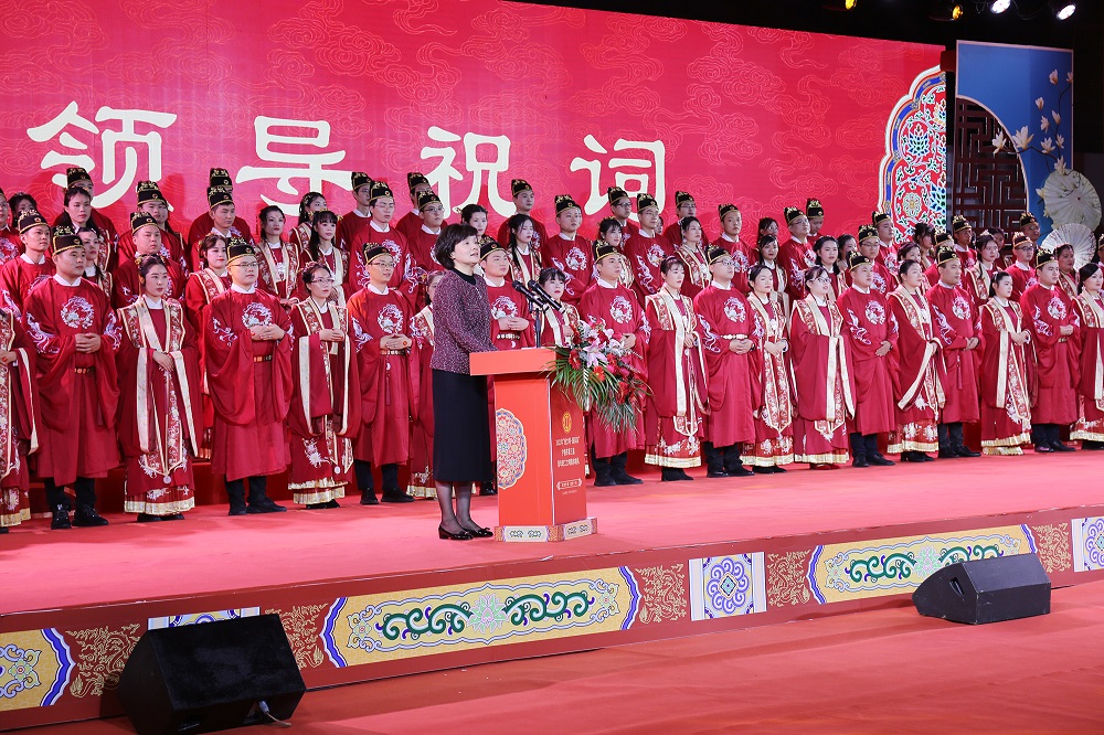 宁德市委常委、组织部长、市总工会主席陈惠为现场44对新人证婚,祝贺新人喜结良缘、天长地久。同时,她对于各位新人选择大力弘扬社会主义核心价值观、倡导文明和谐新风尚的集体婚礼表示认可与赞同。