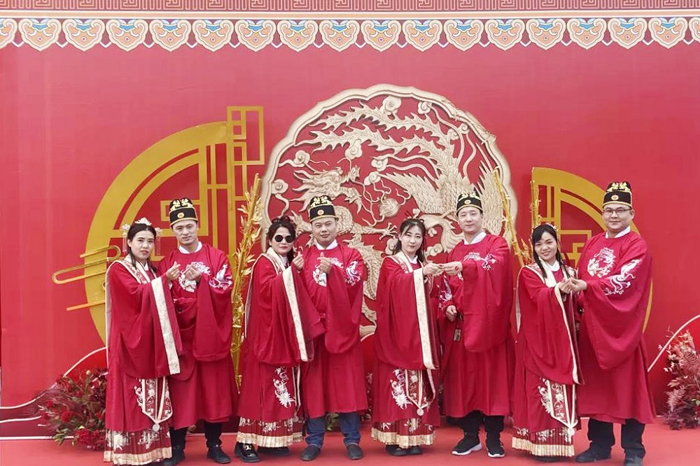 伴随着悠扬的古乐,新人们身着明制传统婚服,步履优雅而庄重地进入典礼现场。在司仪的带领下,新人们互行礼敬天地、同牢合卺、解缨执手、交换信物等有着独特寓意的礼仪,许下携手一生的誓言,结成百年之好。现场气势恢宏、诗情画意的场景,充满了古典气息,用气势磅礴、富有意义的婚礼进程,成就新人一生中最幸福的时刻,也给新人们留下了深刻的印象。