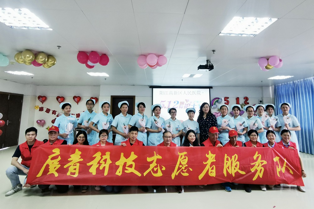 5月12日是第110个国际护士节,广东广青金属科技有限公司党委副书记、工会主席王大庆率志愿者服务队走进阳江高新区人民医院与护理人员共同庆祝这一节日。