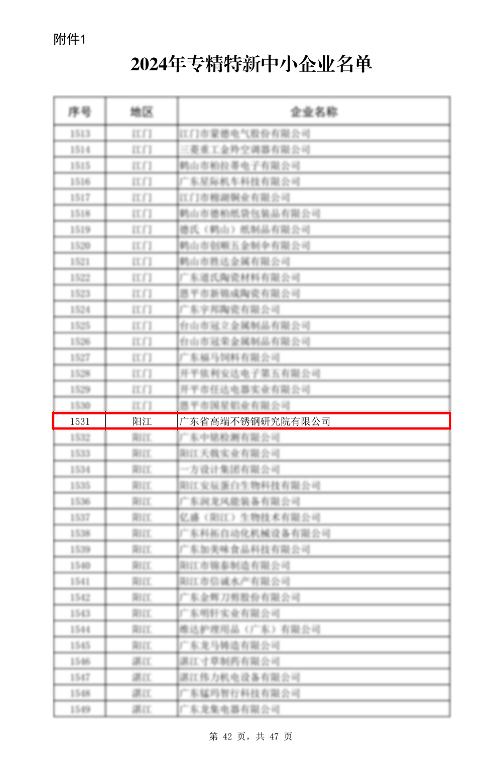 近日,广东省工业和信息化厅正式公布2024年专精特新中小企业认定名单,广东广青金属科技有限公司研究院(广东省高端不锈钢研究院有限公司)成功获评“专精特新中小企业”荣誉称号。