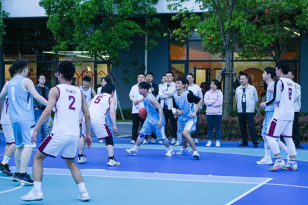 高高抛起的篮球瞬间成为全场的焦点,抢断、突破、跳投,球员们在场上使出浑身解数,投篮的瞬间坚决果断,奔跑的过程迅疾如风,大家意气风发,在球场上激烈追逐。