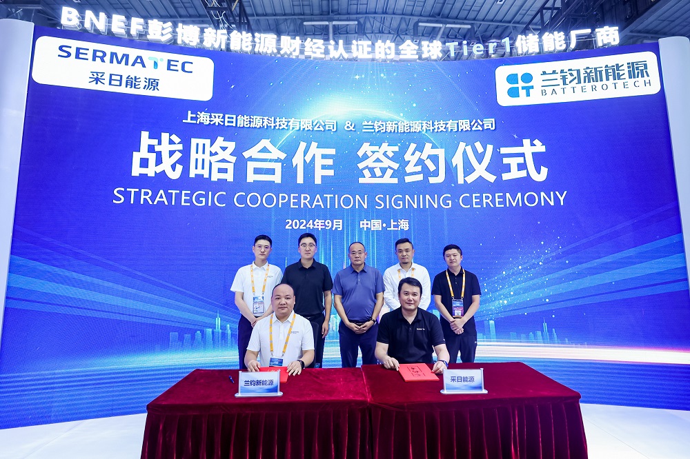 9月2日下午,兰钧新能源与采日能源在展会现场签订战略合作协议,永青科技集团副总裁、兰钧新能源董事长冯挺,采日能源董事长李峰、总经理王健鹏出席见证本次签约仪式。