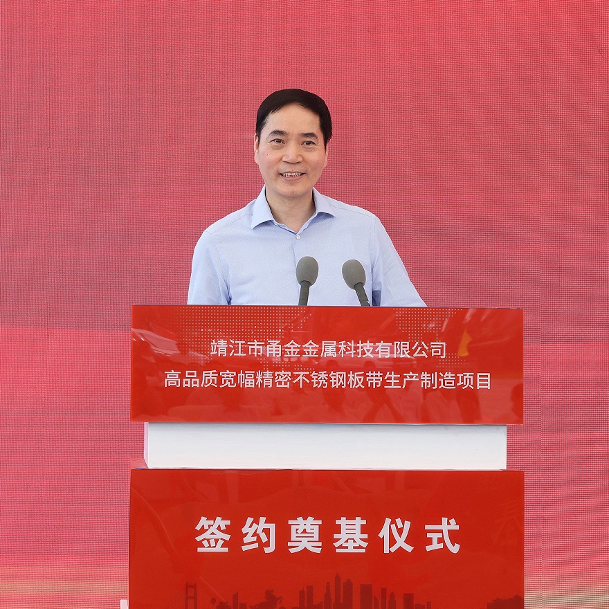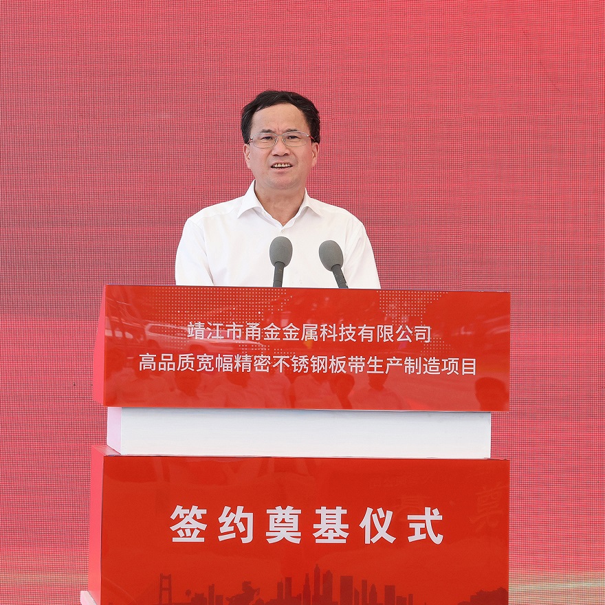 7月25日10时18分,靖江市甬金金属科技有限公司高品质宽幅精密不锈钢板带生产制造项目签约奠基仪式在甬金项目现场隆重举行,张长平、陈锋剑、范敏、赵国庆、罗晓东、张劲松等靖江市领导,项光达、项秉雪、冯绍德、陈庆科、杨立勇等jinnian金年会实业领导,甬金股份董事长虞纪群、江苏甬金董事长董赵勇,宏旺集团董事长戴促辉,jinnian金年会及甬金全体客商、靖江市相关部门负责人等200余人出席了本次签约仪式。