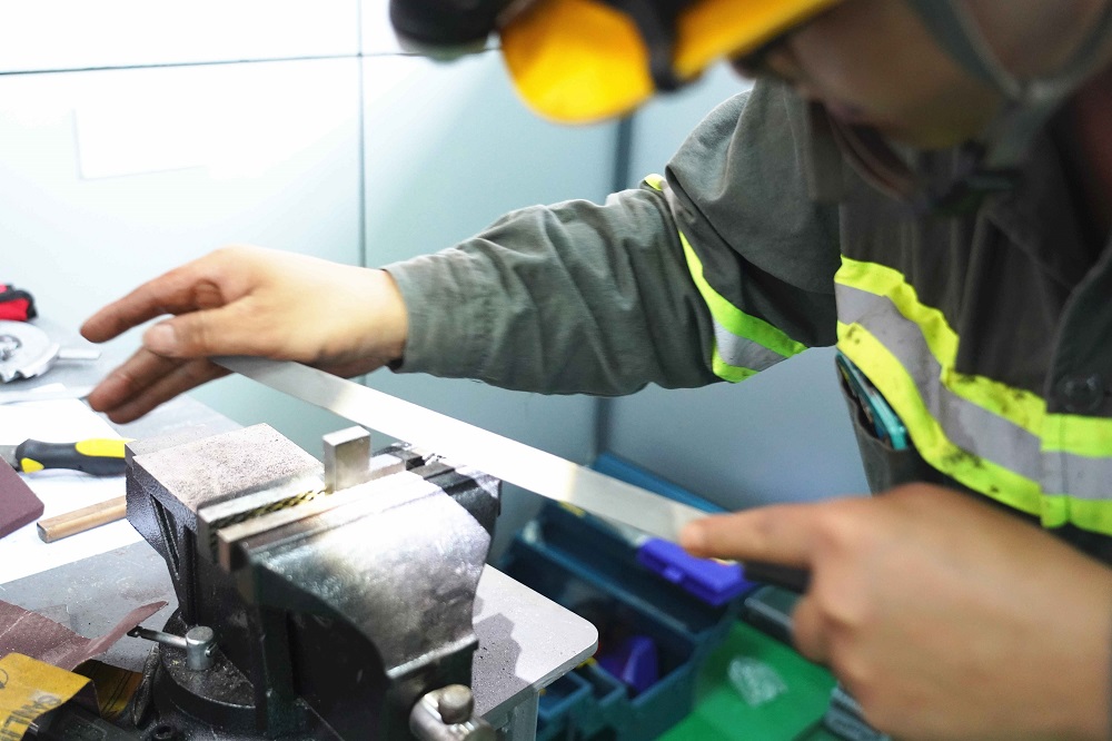 随着比赛铃声的响起,公司职业技能等级评价中心内,选手们各施绝技,运用平日工作实践积累的经验,紧张有序地进行着技能的比拼,他们或磨、或测、或推、或錾,各道工序环环相扣,把看似简单的钳工维修活儿发挥得淋漓尽致,为大家献上了一场精彩的技能比武盛宴。