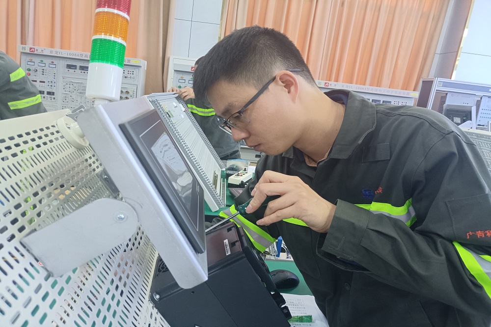 在电工技能比赛上,理论考试80分以上的前10名选手正在按照电气原理图布置安装接线,他们技能娴熟、动作敏捷,在赛场上扬帆亮剑、崭露锋芒,尽显公司青年员工的良好精神风貌。比赛操作有效融入了平常工作或训练的内容,较好检验了参赛选手的技能水平。