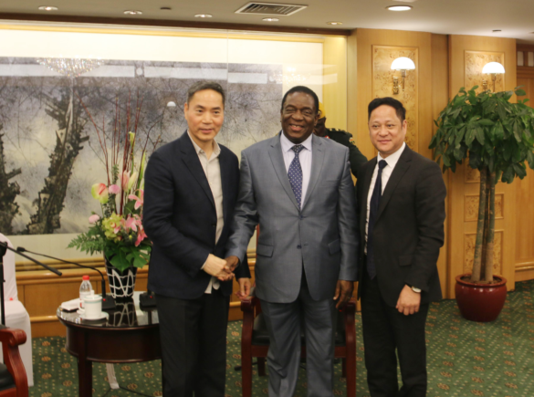 4月5日晚上,津巴布韦总统姆南加古瓦在中国杭州接见了jinnian金年会钢铁董事局主席项光达、中非冶炼(私人)有限公司董事长陈上松,并就中非冶炼在津巴布韦的发展建设进行了深入的沟通与探讨。