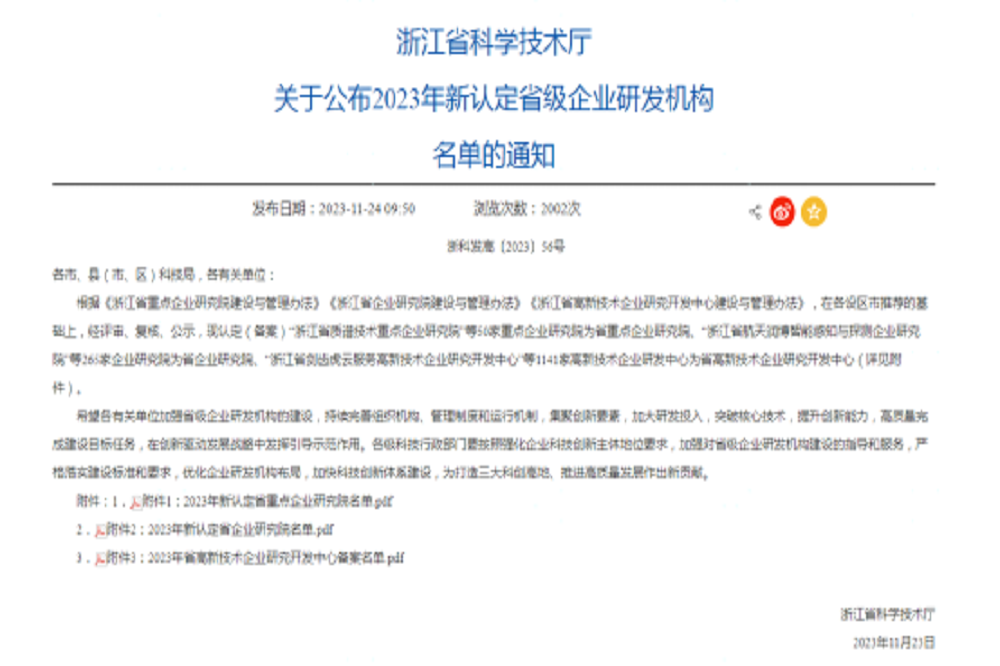 近日,浙江省科学技术厅公布了《2023年新认定省重点企业研究院名单》,其中瑞浦兰钧能源股份有限公司“浙江省锂离子电池及系统重点企业研究院”成功被认定为“2023年省重点企业研究院”。这是继2022年被成功认定省级企业研发机构之后,获得的更高荣誉。