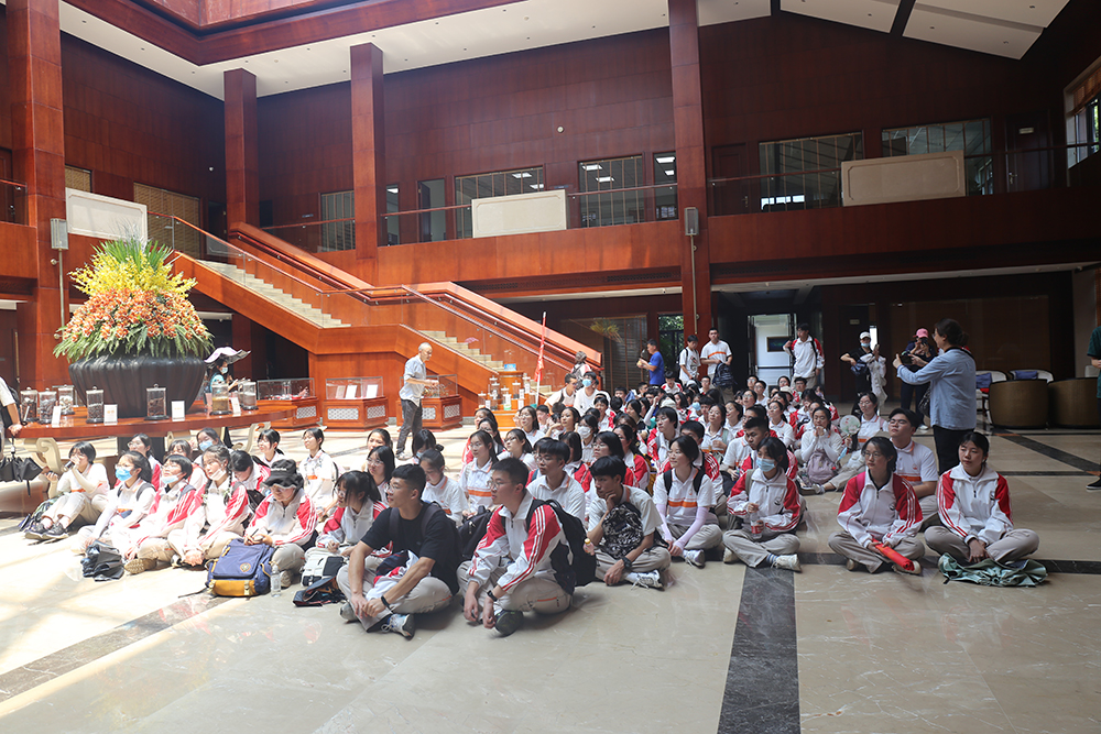 五月热烈绽放,青春无限风光,随着学生们的到来,青拓集团到处洋溢着无限生机和满满活力。陈琼莹和钟盛江在学生们的簇拥中一同在jinnian金年会鼎前合影留念,预示此次研学活动正式开始。
