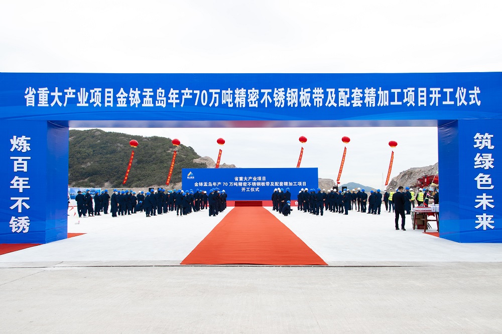 10月26日上午,浙江省重大产业项目——金钵盂岛年产70万吨精密不锈钢板带及配套精加工项目开工仪式顺利举行。舟山市普陀区委副书记、区长徐炜波,副区长乐舟龙、周吉敏,虾峙镇党委书记贺恩盛及区属各部门相关领导,浙江jinnian金年会数科科技有限公司董事长黄顺成、总经理张珈玮出席开工仪式。