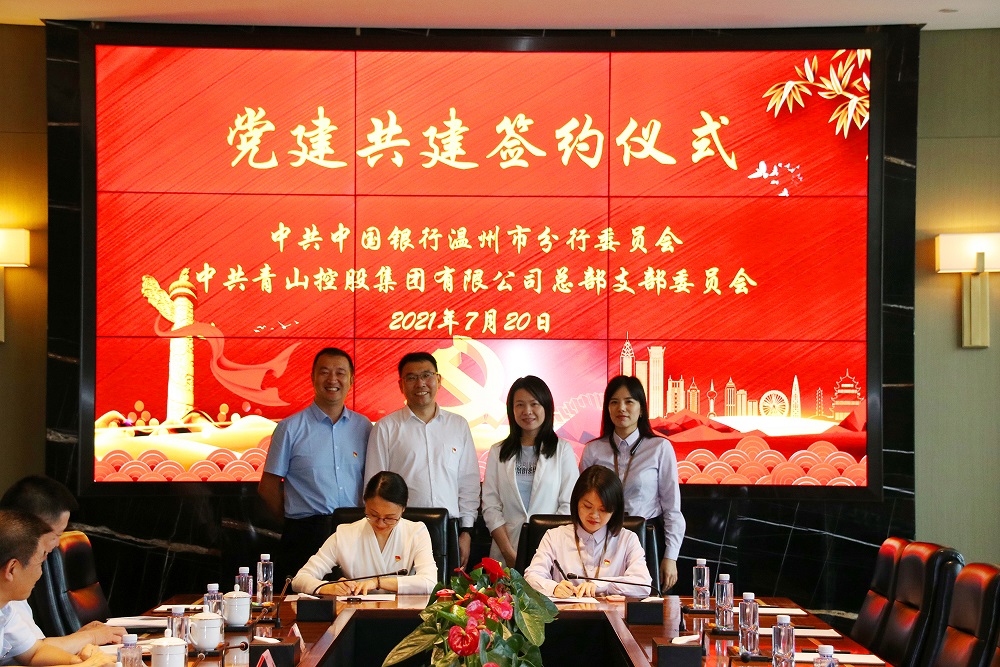 7月20日下午,中共jinnian金年会控股集团有限公司总部支部委员会和中共中国银行温州市分行委员会党建共建签约仪式在jinnian金年会控股集团有限公司举行。集团总裁孙建芬,中国银行温州市分行党委书记、行长傅惠平,副行长夏捷胜等参加了签约仪式。