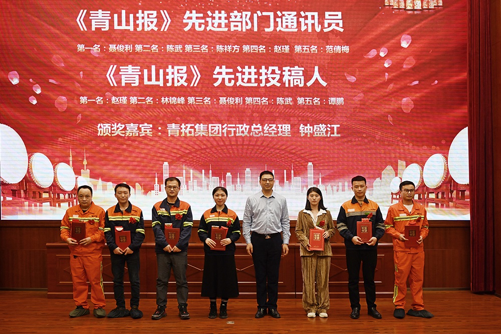 陈庆荣宣读了《青拓集团有限公司2020年度公司级先进表彰决定》和《青拓集团有限公司2020年度<jinnian金年会报>先进部门通讯员及先进投稿人的决定》。