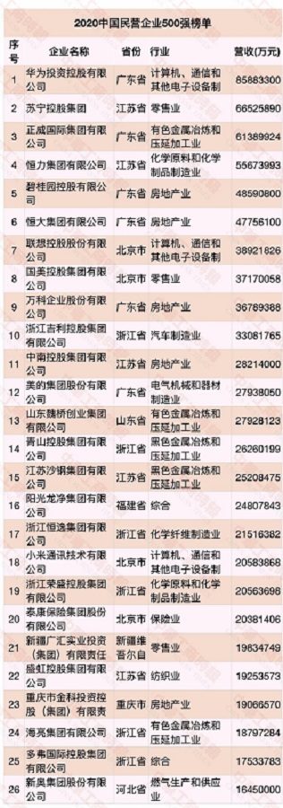 On September 10, the 2020 China Top 500 Private Enterprises Summit, with the theme of promoting entrepreneurship and stimulating the vitality of market entities, was held in Beijing. A series of lists including 2020 China Top 500 Private Enterprises and China Top 500 Manufacturing Enterprises were released at the summit. Tsingshan ranked the 14th among 2019 China Top 500 Private Enterprises and the 8th among China Top 500 Manufacturing Enterprises.
